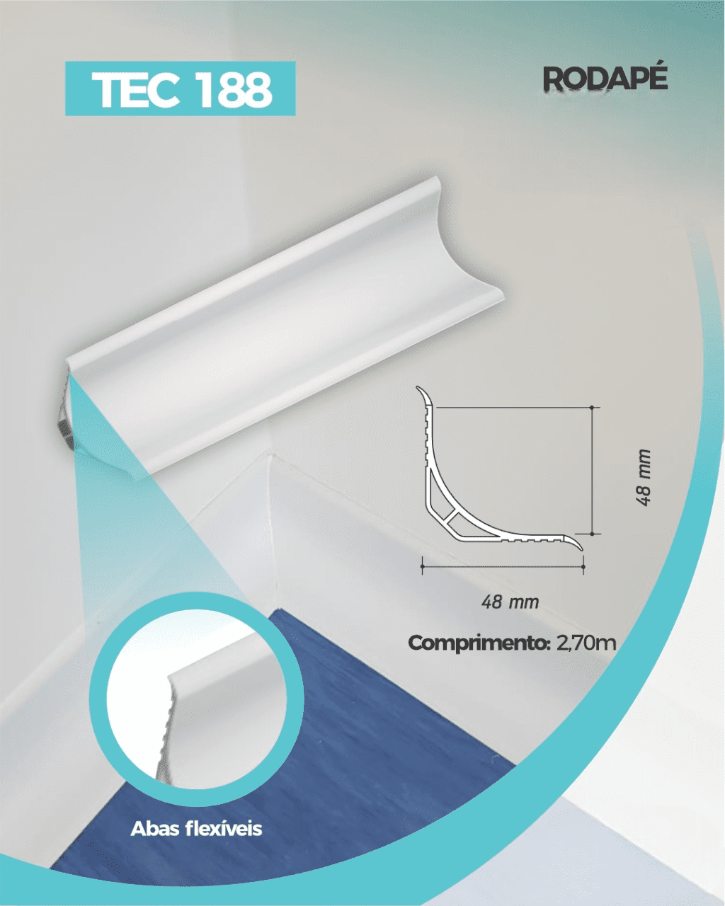 O Rodapé Curvo de Sobrepor Co-Extrusão é uma solução inovadora para ambientes que exigem máxima higiene e acabamento técnico. Fabricado em PVC rígido, atóxico e resistente a impactos, esse perfil garante durabilidade e segurança, sendo ideal para obras e reformas com padrões sanitários elevados.